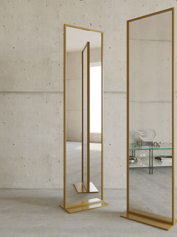 Дизайнерское напольное зеркало Glass Memory Queen в металлической раме золотого цвета в Бийске