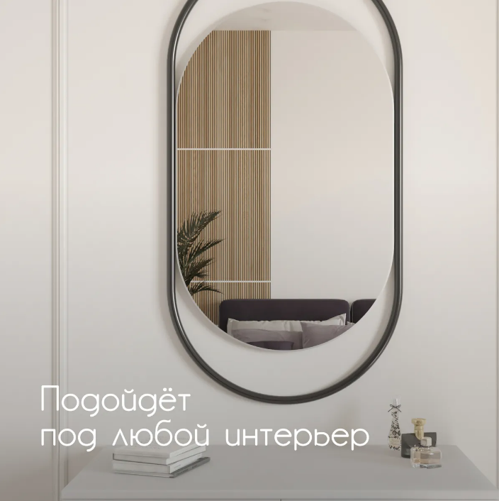 Зеркало «Muse». Артикул GMZ-02-1-1/2/3 Идеальная симметрия и простая изысканность ар-деко в виде овального настенного зеркала в металлической раме способны дополнить интерьер, выполненный в любом стиле, начиная от винтажного и заканчивая авангардным. Зеркальное полотно является продукцией известного бельгийского производителя AGC, который славится непревзойдённым качеством своих зеркал. Идеально подходит для ванной комнаты или спальни.Характеристики:– профиль рамы круглый, диаметром 20 мм; – габариты – 1040х540х20 мм; – размер зеркального полотна – 800х500 мм, толщина – 4 мм; – вес – 7 кг; – устойчивая матовая порошковая окраска; – возможные цвета – золотой, чёрный, белый; – саморезы для крепления к стене в комплекте; – гарантия – 1 год.