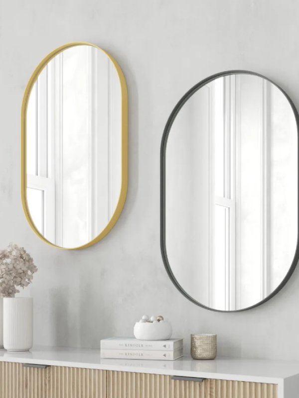 Зеркало «Harmony mini». Артикул GMZ-10-1-1/2/3 Классическая овальная форма и минималистичный дизайн овальных зеркал создают возможности для использования их в любых пространствах. Ярким примером является элегантное овальное настенное зеркало в тонкой металлической раме, которое можно использовать в современных ванных комнатах, спальнях, коридорах, гостиных, причём как в просторных загородных апартаментах, так и в малогабаритных квартирах. Зеркальное полотно высокого качества. Оно является продукцией известного на весь мир бельгийского производителя AGC. На обратной стороне рамы имеются специальные крепёжные элементы.Характеристики:– габаритные размеры – 810х510х40 мм, металлический профиль тонкий – 4х40 мм, выступ рамы – 15 мм;